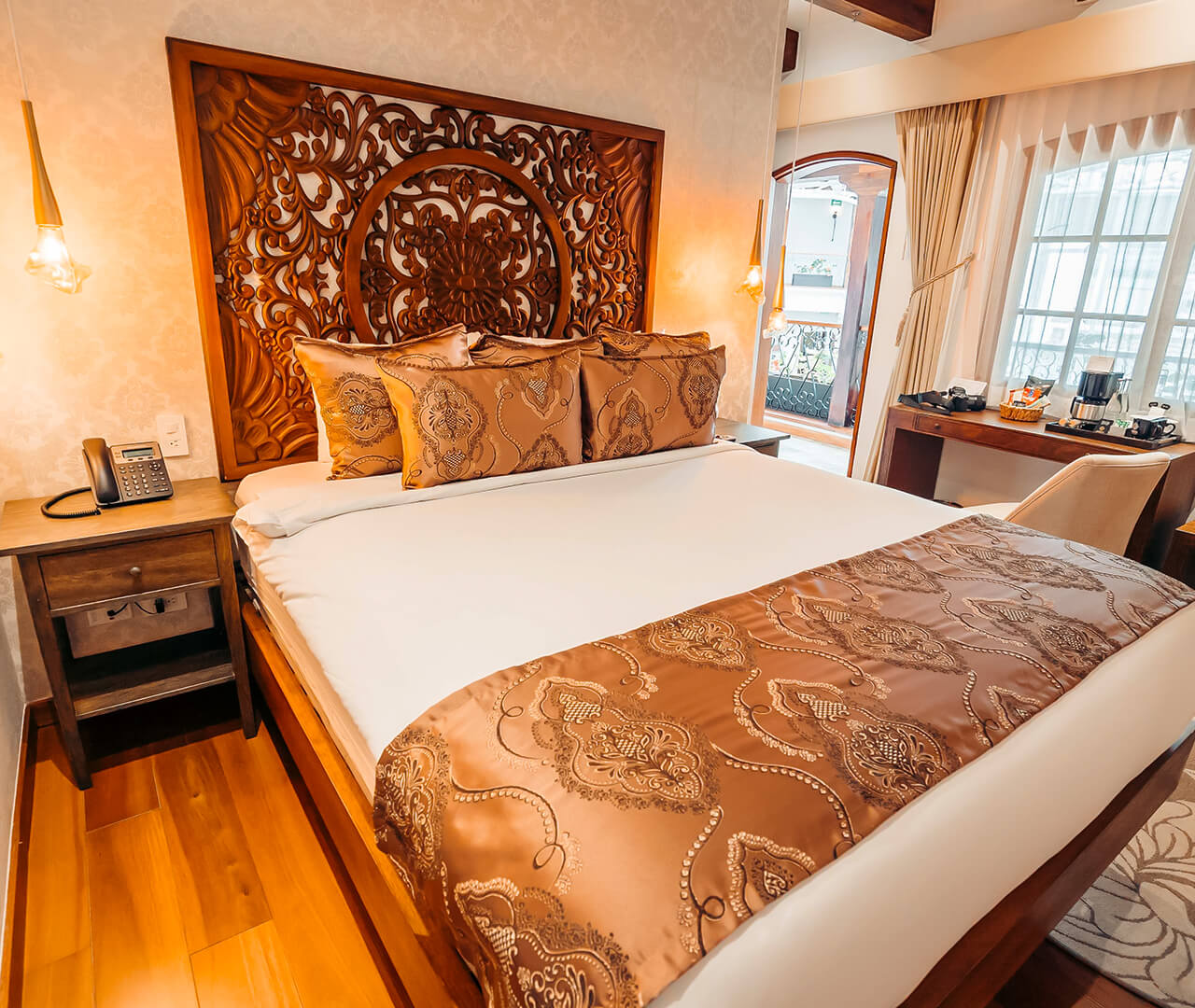 Nuestras acomodaciones Deluxe ofrecen una cama Queen con un sistema de felpa acolchonada (plush pillow top) en la parte superior del colchón, desarrollado exclusivamente por Simmons para Art Hotels Ecuador. Frescas sábanas blancas, un acogedor duvet 100% de algodón y la línea orgánica de amenidades para baño exclusivamente ecuatoriana de AromaVida ayudan a rejuvenecer cuerpo y alma.